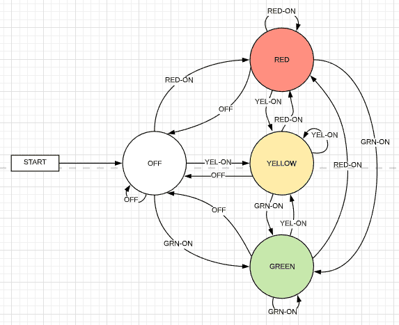 - In this diagram we see the logic of the automatic timer function. This is what the logic should be when the light will act as a normal stoplight would; cycling through its lights on specified intervals.
